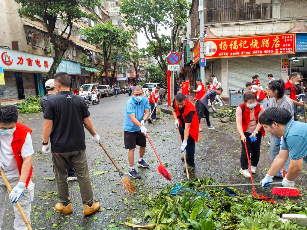 10月6日上午,学院党委按照上级部署成立了“救灾复学”党员突击队,分赴霞山区海头港社区党群服务中心和学校湖光校区开展救灾复产复学活动,海头港社区党群服务中心的师生共分三个小组分别清理了解放东路及附近的路障,将断裂的树枝搬运至路边,将散落的树叶聚集成堆,便于后续市政统一运输。湖光校区的党员干部和师生员工在学院领导的带领下迅速开展了校园清理和恢复重建工作,为学校后续复工复学和重建做好了前期准备工作。